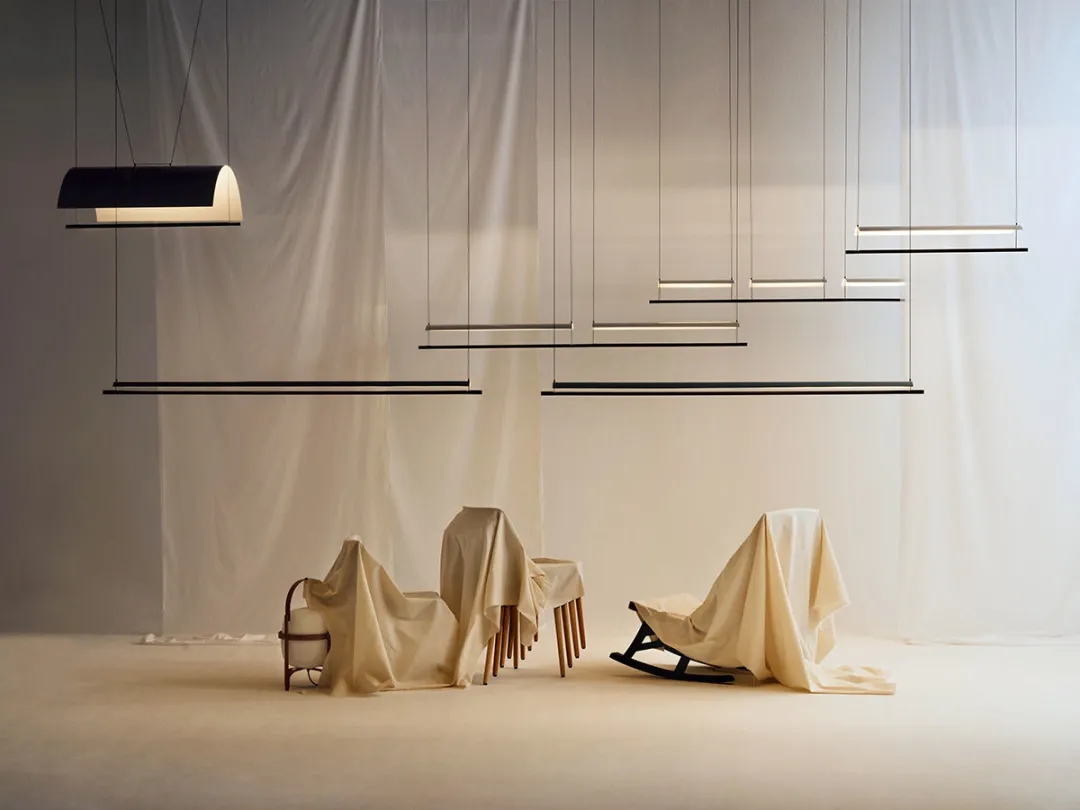 只要一块薄薄的金属板,灯光就会柔和的散开,充满诗意。无论是单个,还是组合使用都让人着迷。