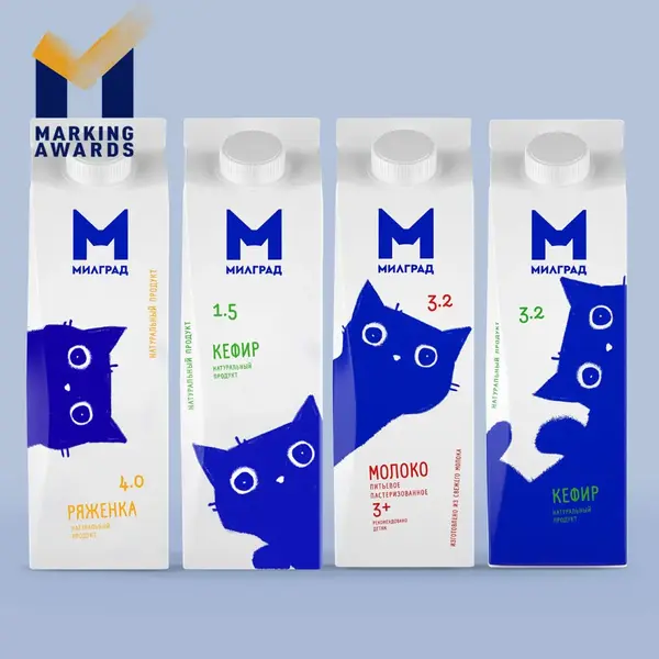 作品简介:Milgrad牛奶作为主打产品,包装设计上以纯白色底色,和蓝色的可爱的猫咪形象大使为图案。设计师还为Milgrad乳制品的整个系列量身定做了这种风格。因此,你可以在酸奶油、农家奶酪、吉士甜点、黄油、凝乳奶酪和盐水熟成的奶酪上,都能看到蓝猫的身影。评委评语:我喜欢这个设计项目的地方在于,它不但在类别中使用了“明显”的视觉线索(特别是调色板),还增加了一种变量——一个意想不到的角色(猫),使设计与众不同。这款包装设计凭借强大的货架冲击力和身临其境的布局,邀请消费者与包装标签互动。包装的直观性和视觉干扰的完美平衡,使这个项目成为我的最爱。