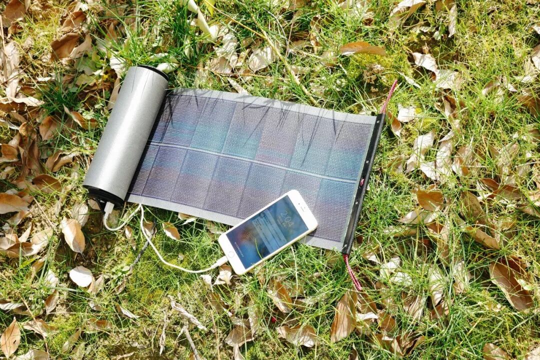 这是一款采用薄膜太阳能电池技术的移动充电器,在阳光下展开,即可成为充电器。