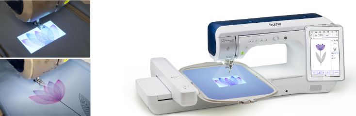 适用于缝制被褥和大型刺绣,它还配置了投影仪,可在布料上投射纹样和制作指南,这样用户使用起来非常轻松。