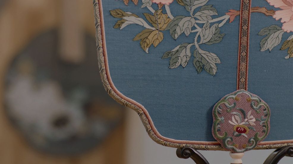 在李晶看来,扇面不是图案的花样越复杂就越适合做团扇,就算找到了图案精美的扇面,也很考验构图能力,一寸之差,整个扇子的味道就不一样了。
