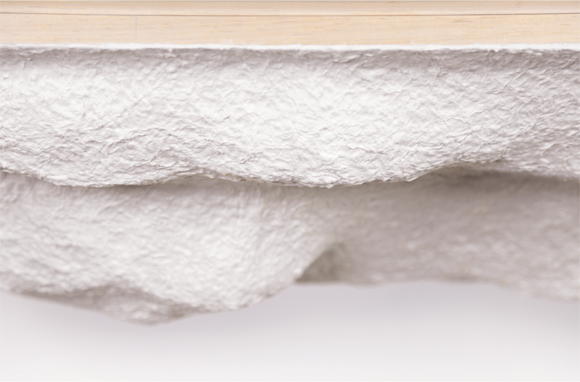 将纸浆和水泥进行融合,利用纸与水泥截然相反的特性进行配比,将不同的配比逐一分层后依次正序或者倒序来组合。组合的产品比纯水泥减重80%,减少运输成本,纸张回收,环保