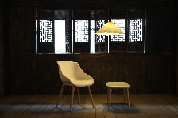 “From Yuhang”:自2010年品物流形设计团队开始走访位于余杭周边的村落,对传统材质与传统手工艺进行研究,比如竹纸,黑陶,清水丝绵等材质;余杭油纸伞工艺等。并且对其进行延续性设计,衍生家具系列产品。诸如:飘 Piao宣纸椅,固 Gù竹纸椅,露 Lù陶瓷桌系列,落 Luò 竹纸灯具等。逐步建立起”From Yuhang”的地区品牌。