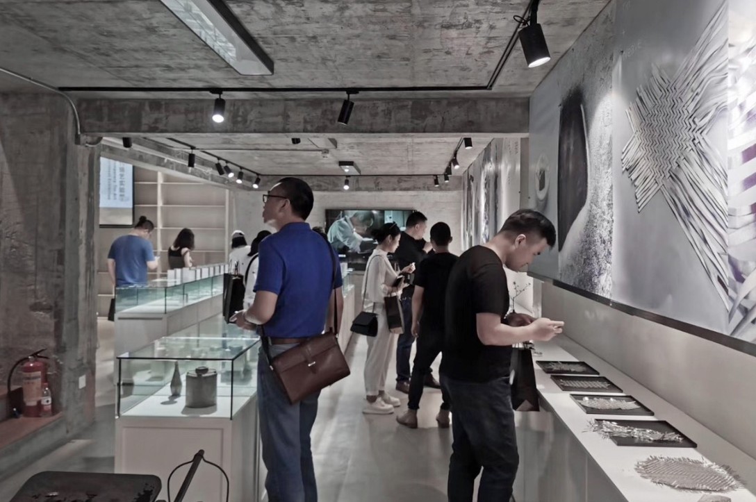 活动呈现了慢物质“锡木作”团队以锡为载体的创作实践,将基础材料及技术与传统民艺、当代艺术、视觉设计、文创产品多维度融合的系统性探索成果。灯光下的每一块锡、每个角度都是高光瞬间。
