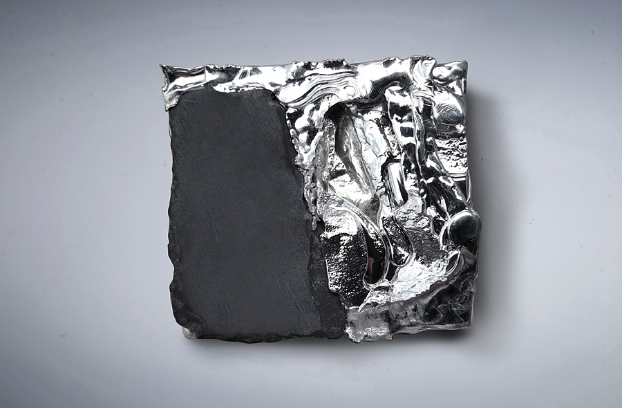 就如赵清先生所说“生活发生在偶然与必然之间。”每一块熔锡水中爆炸出的锡块,形态随机,各不相同;而每一块木、石中流淌的熔锡也难以控制。这种种偶然最后通过锡温下降固化成必然,呈现在观者眼前。