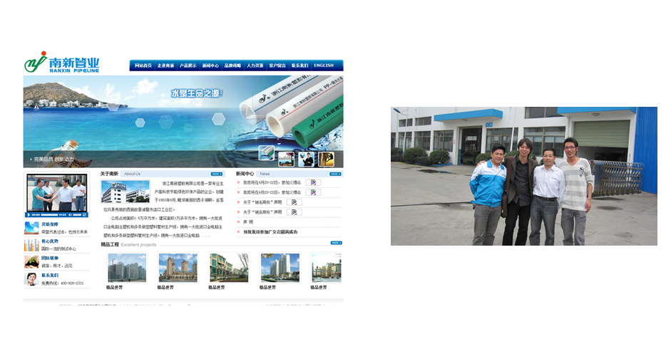 浙江南新塑胶有限公司是一家专业生产高科技节能绿色环保产品的企业,创建于1983年8月,毗邻美丽的西子湖畔,坐落在风景秀丽的西施故里—— 诸暨市店口工业区。 公司占地面积1.5万平方米,建筑面积1万平方米,拥有一大批进口全电脑注塑机和多条新型塑料管材生产线,并聘有多名高分子专业人才。主要生产“南新”牌PP-R管材管件、铝塑PP-R管、PE-RT地暖管材管件、玻纤增强 FR-PPR复合管、纳米抗菌PP-R管材、IPS管材管件、PE管材管件、铝塑复合压力管、铜管件、PE-X管、管扣座、管道工具、高性能工程塑料零部件等系列产品。