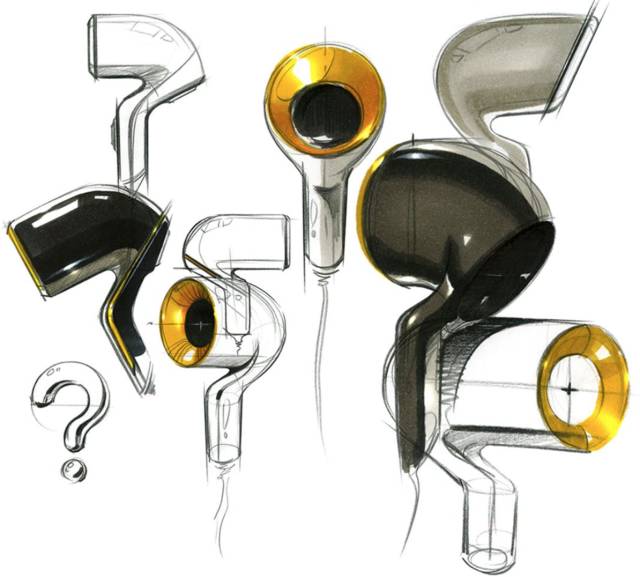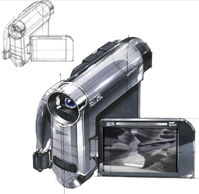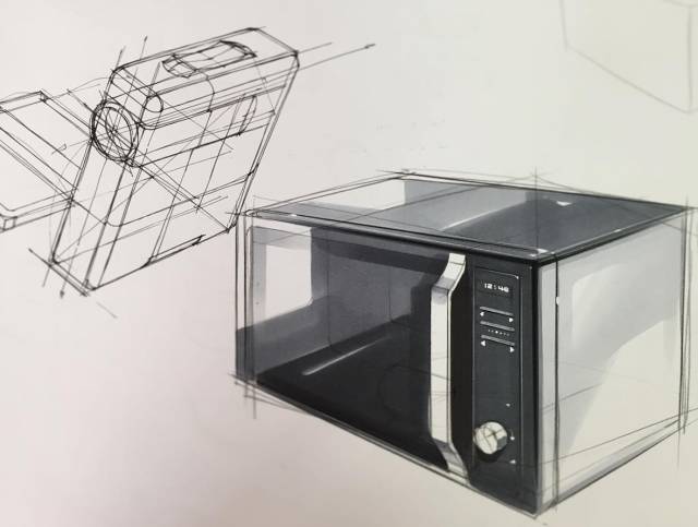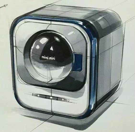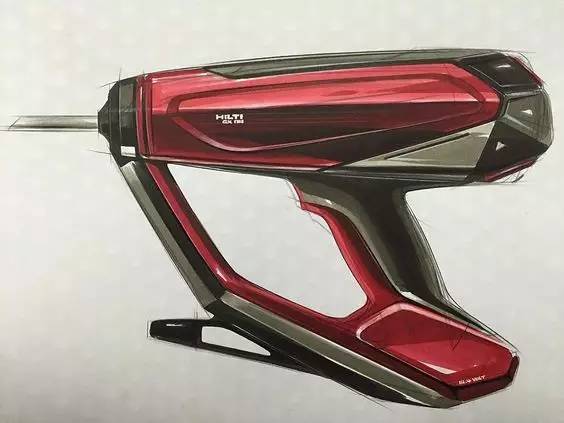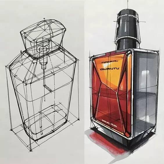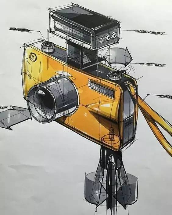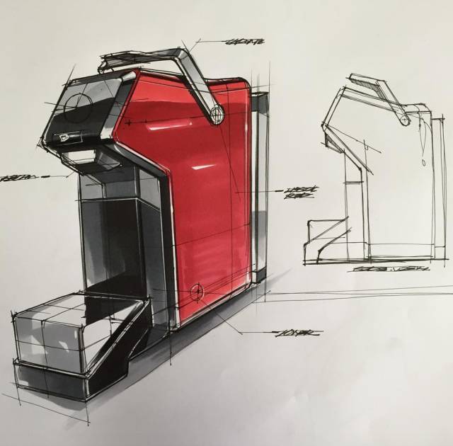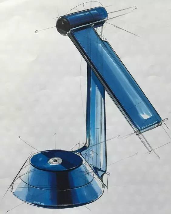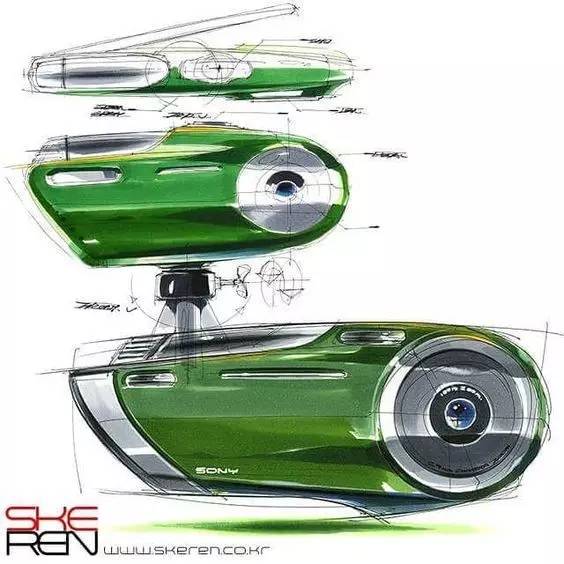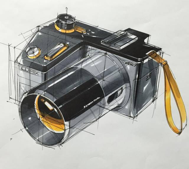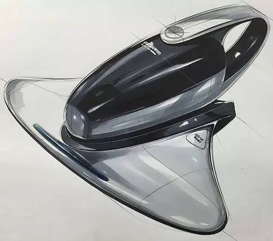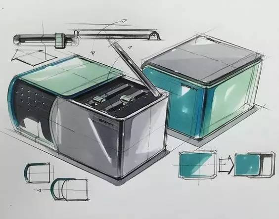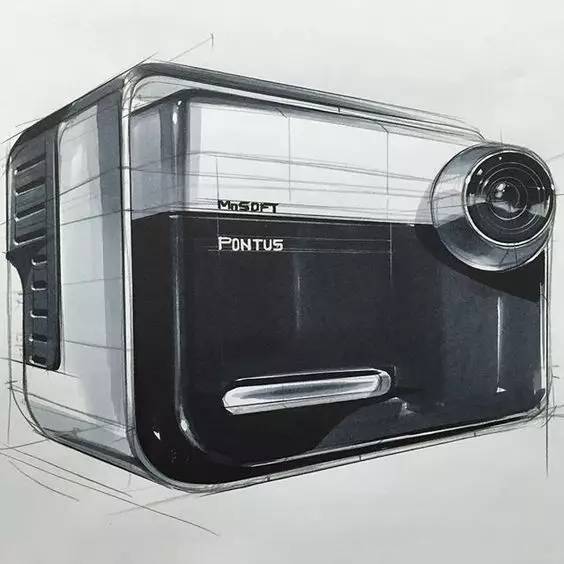 其产品手绘表达的特点在于:产品的结构比例表达精准、马克笔表达光影材质概括精确,整体风格上,非常通透、干练。