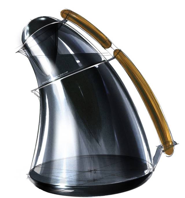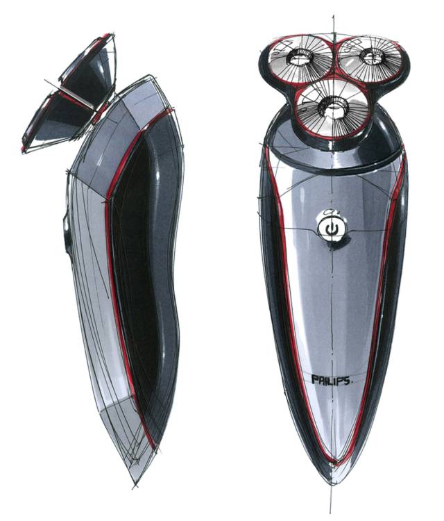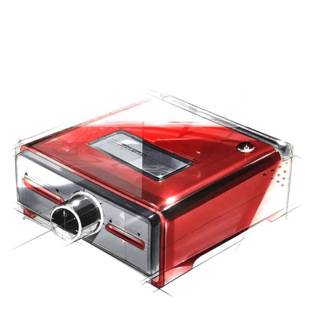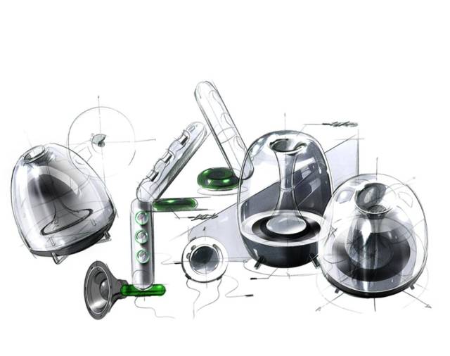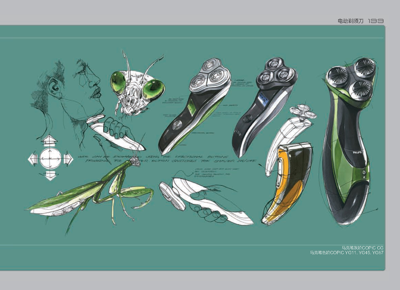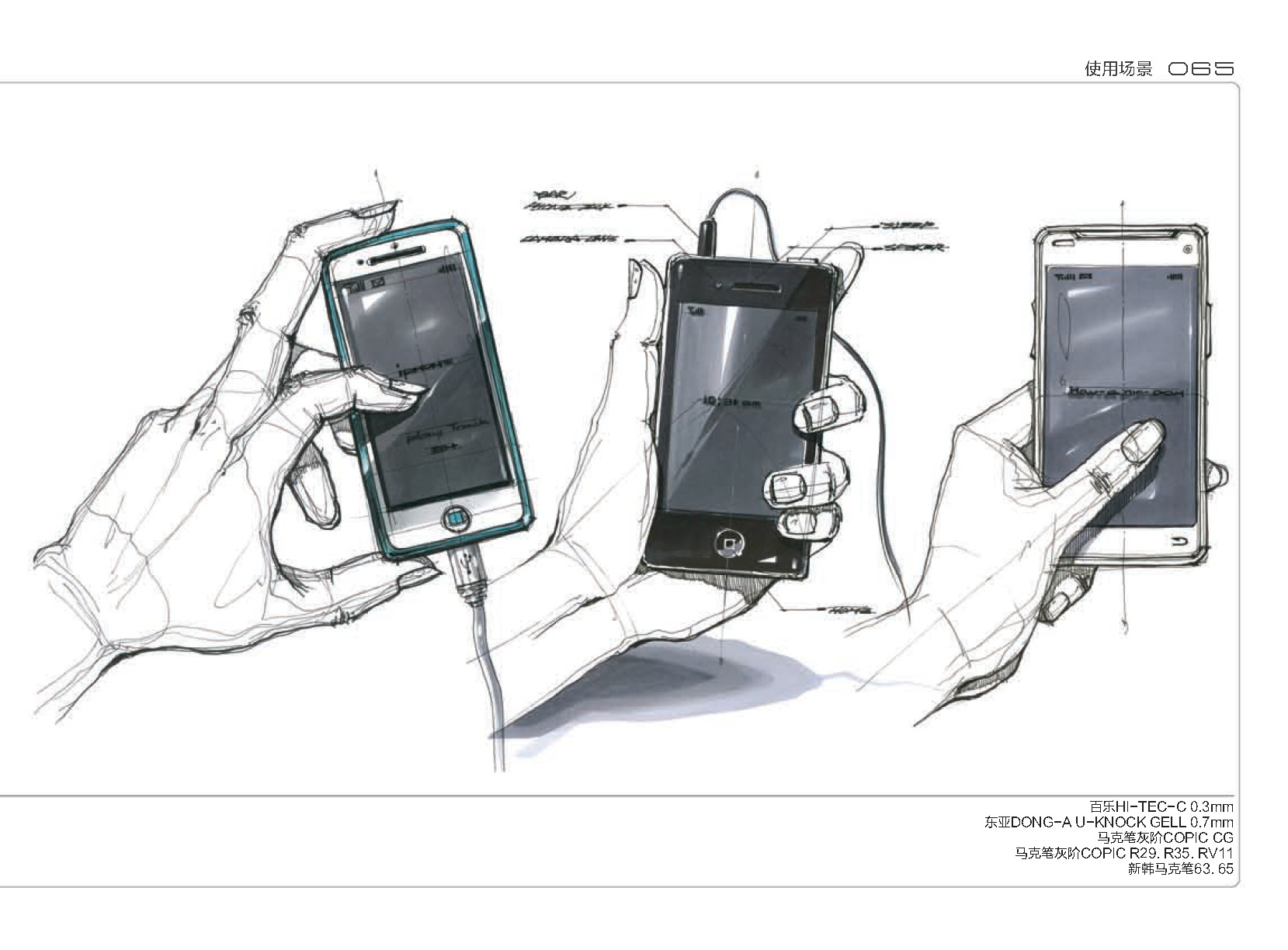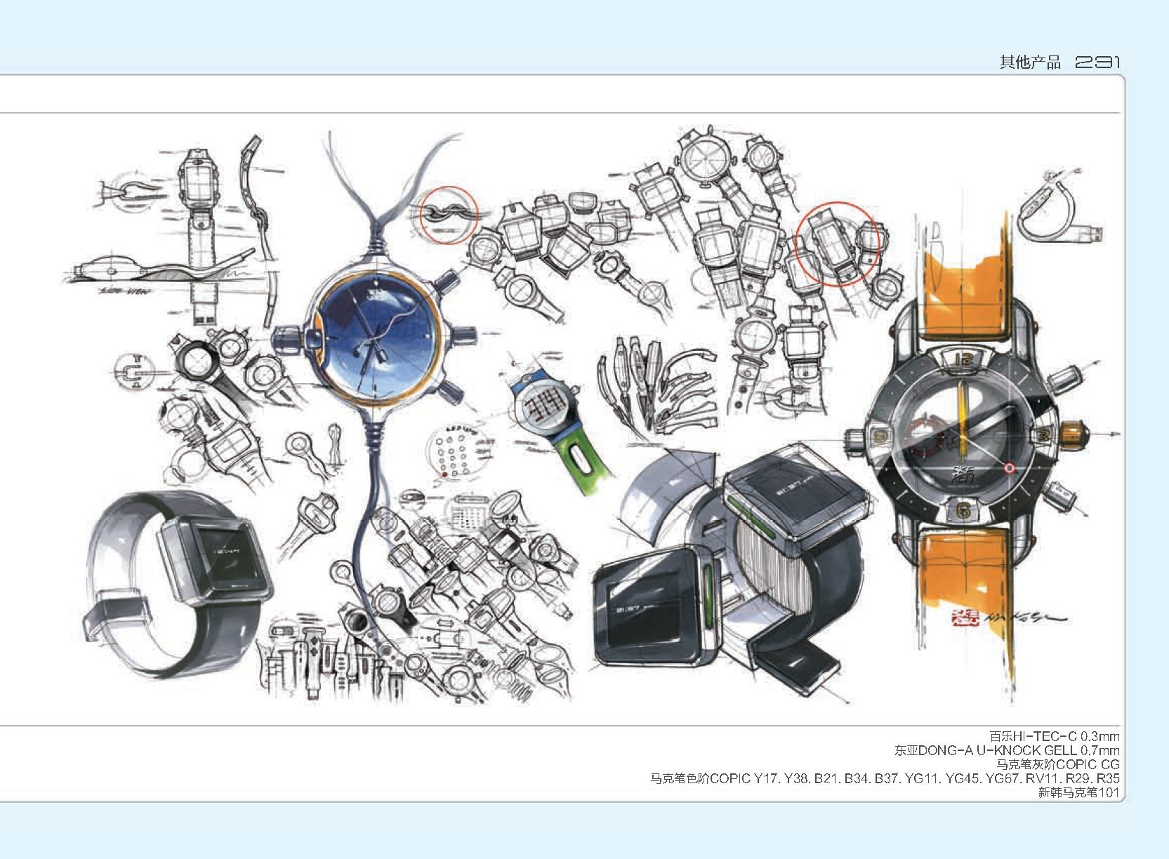 其产品手绘表达的特点在于:产品的结构比例表达精准、马克笔表达光影材质概括精确,整体风格上,非常通透、干练。