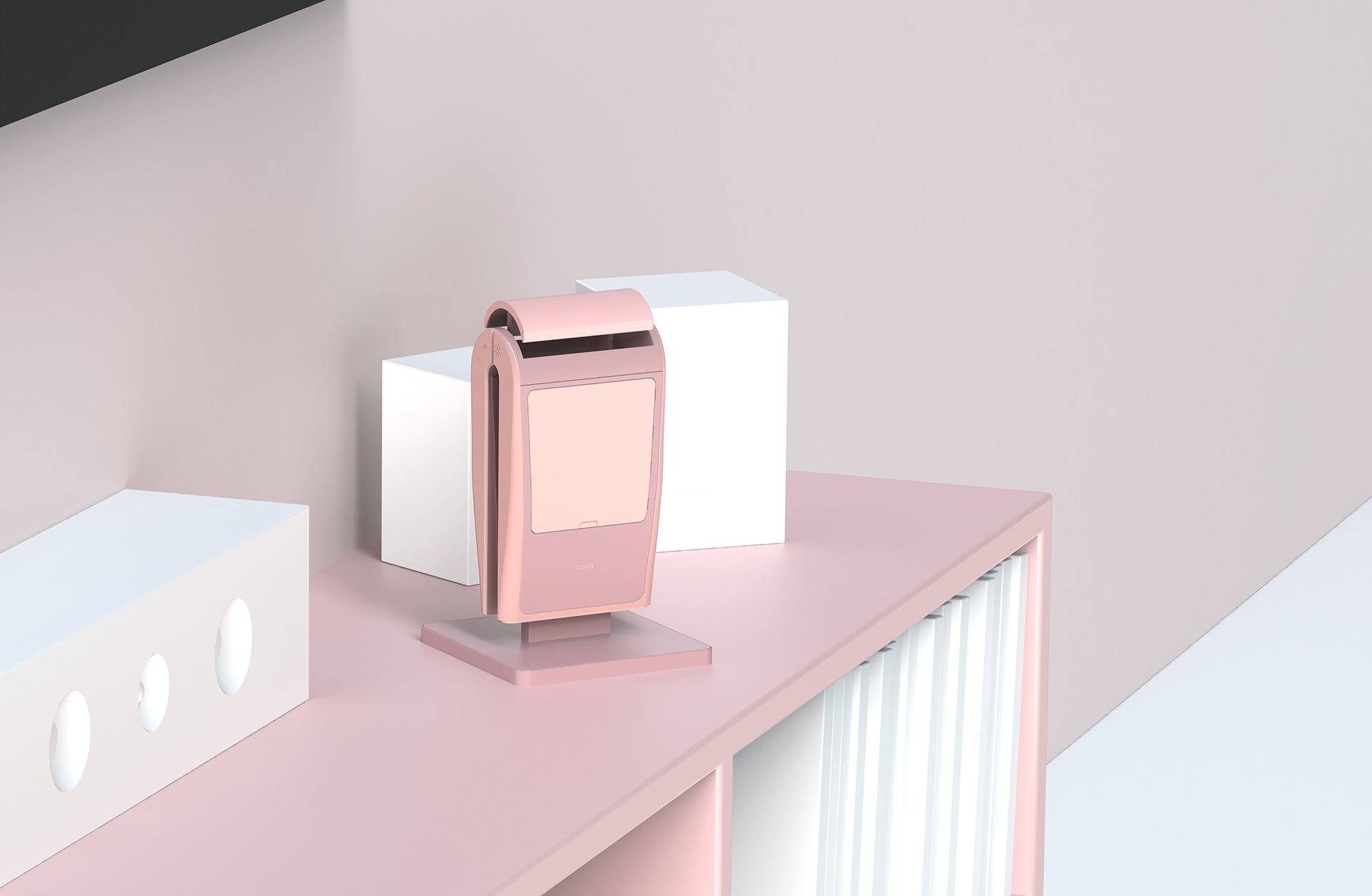 CLOZET,是一个悬挂在衣架上的便携式空气净化器。