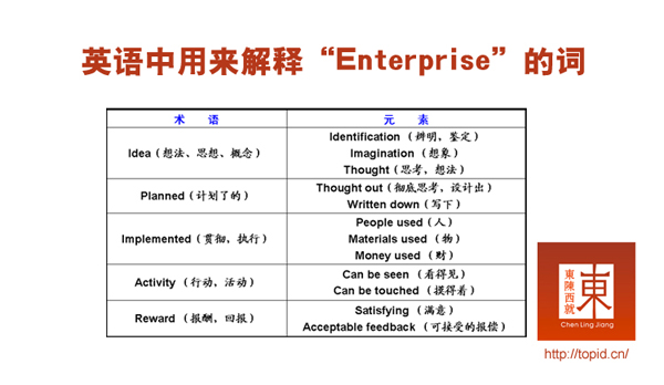 另一种用法与组织接近,可以用来泛指公司、学校、社会团体乃至政府机构等。后一种用法主要出现在信息技术应用领域的一些专有名词中,例如企业应用(enterprise applications)、企业计算(enterprise computing)、企业集成(enterprise integration)、企业工程(enterprise engineering)、企业架构(enterprise architecture)、企业建模(enterprise modeling)等等。
