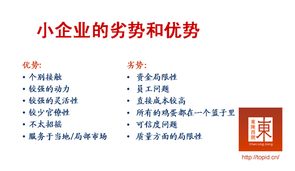 A、小企业的构成要素: 独立的管理 所有者提供资本 以当地经营为主 行业内规模相对较小 B、员工不超过50人的企业。