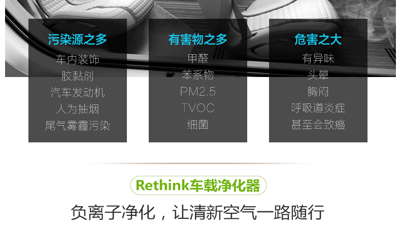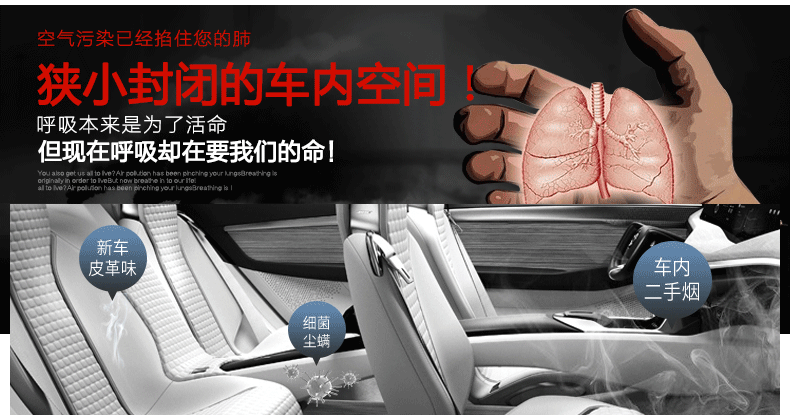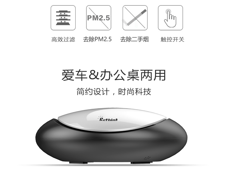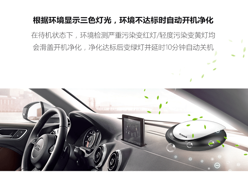 本款车载智能空气净化产品是一款基于智能环境监测、智能开启的车载空气净化器,其根据车内环境智能控制系统进行工作,该产品同样也可以放办公桌上使用,给您一个清新健康的个人空间。